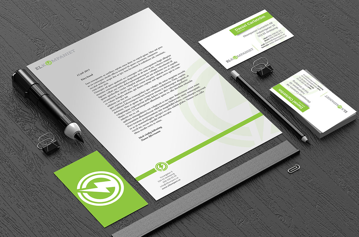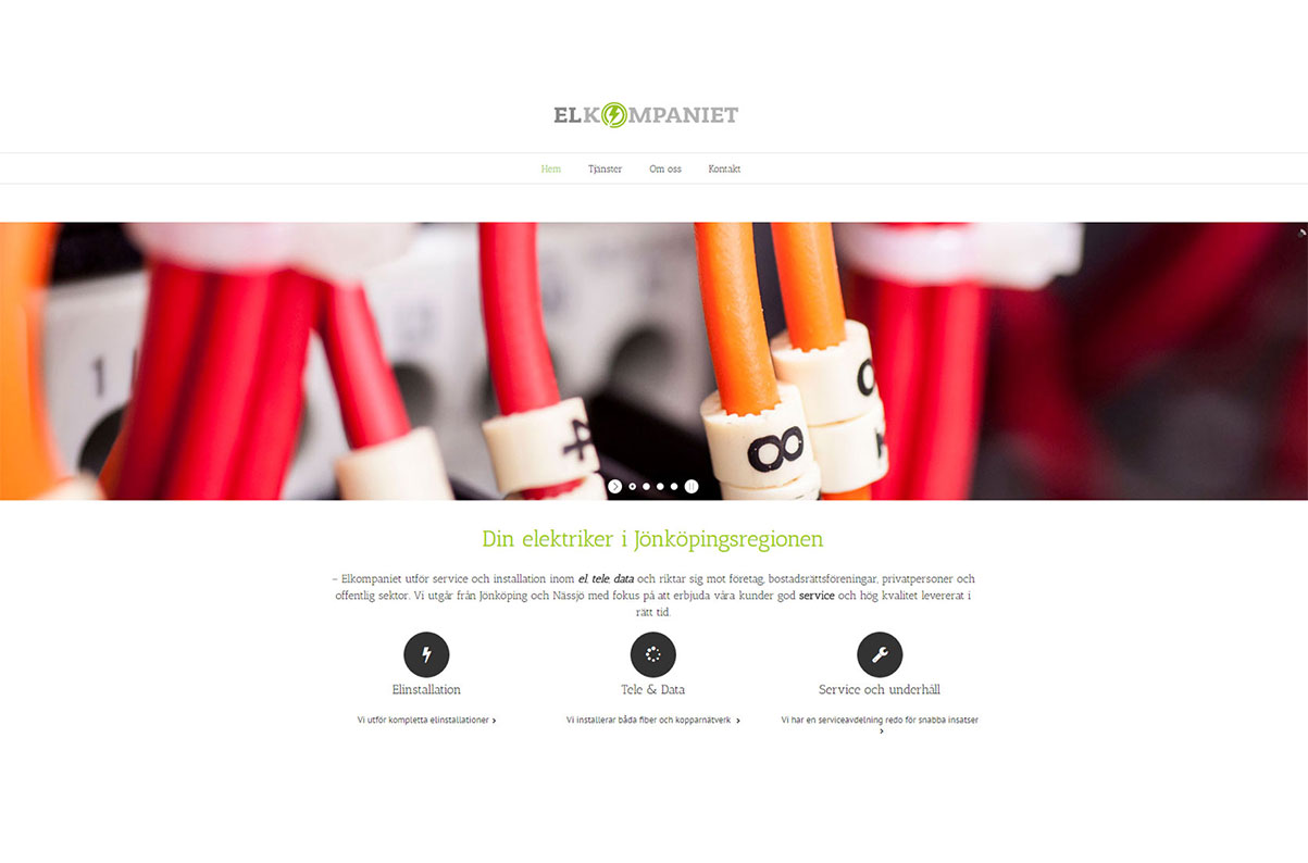 Här skapade vi en grafisk profil med bildekaler inkluderat, personalfoto och en hemsida. Så att Elkompaniet såg bra ut från dag 1.